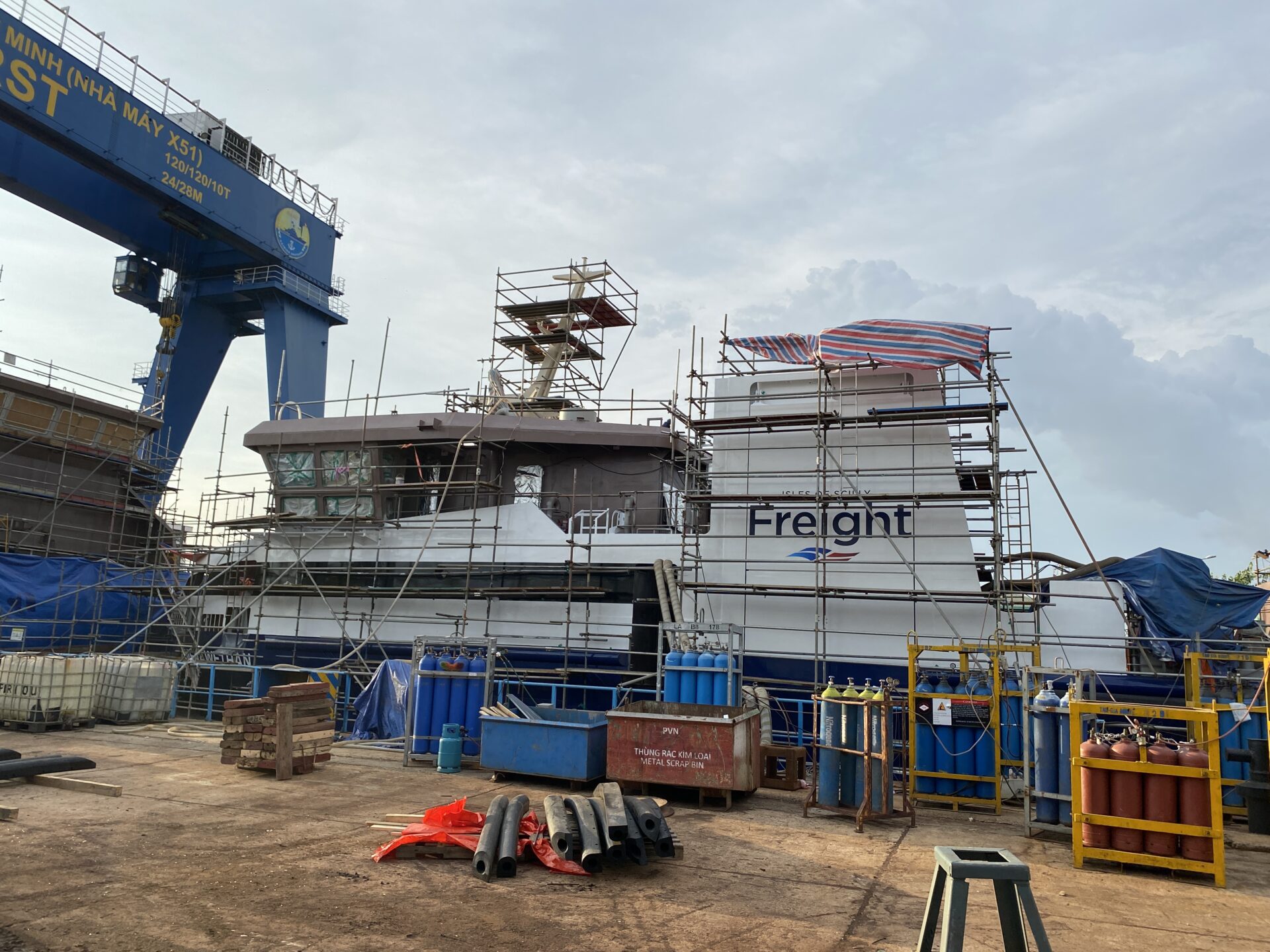 The cargo crane is due to be delivered to the shipyard this week and installed.