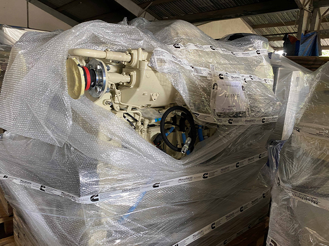 Machinery is increasingly arriving at the shipyard, including Menawethan’s main engines, generators and propeller shaft line.
